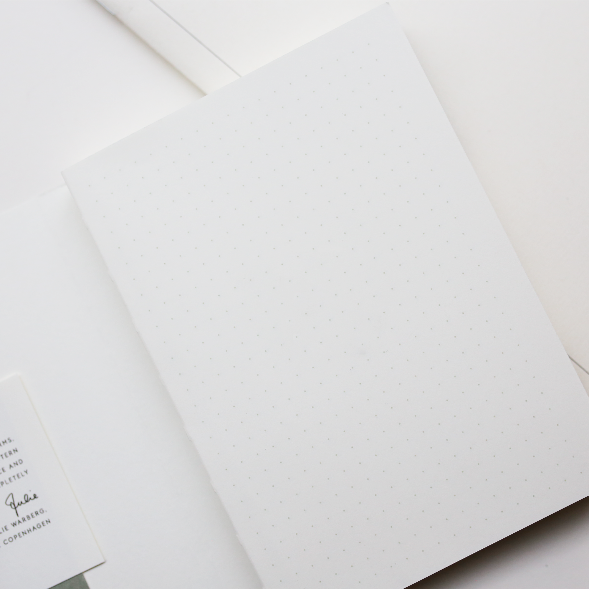 I use this notebook to sketch up ideas, brainstorms and creative projects. The light dot grid pattern offers the perfect mix of structure and space and the binding allows the notebook to lay completely flat when opened.