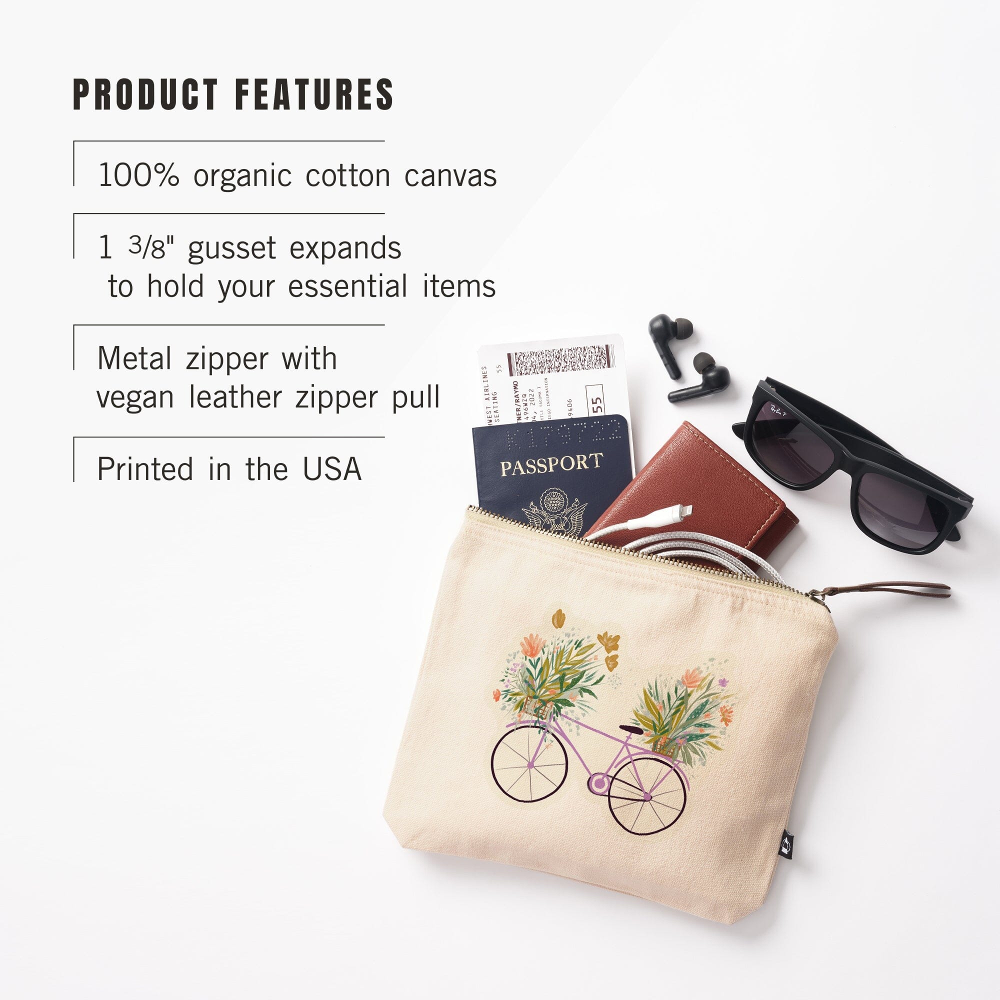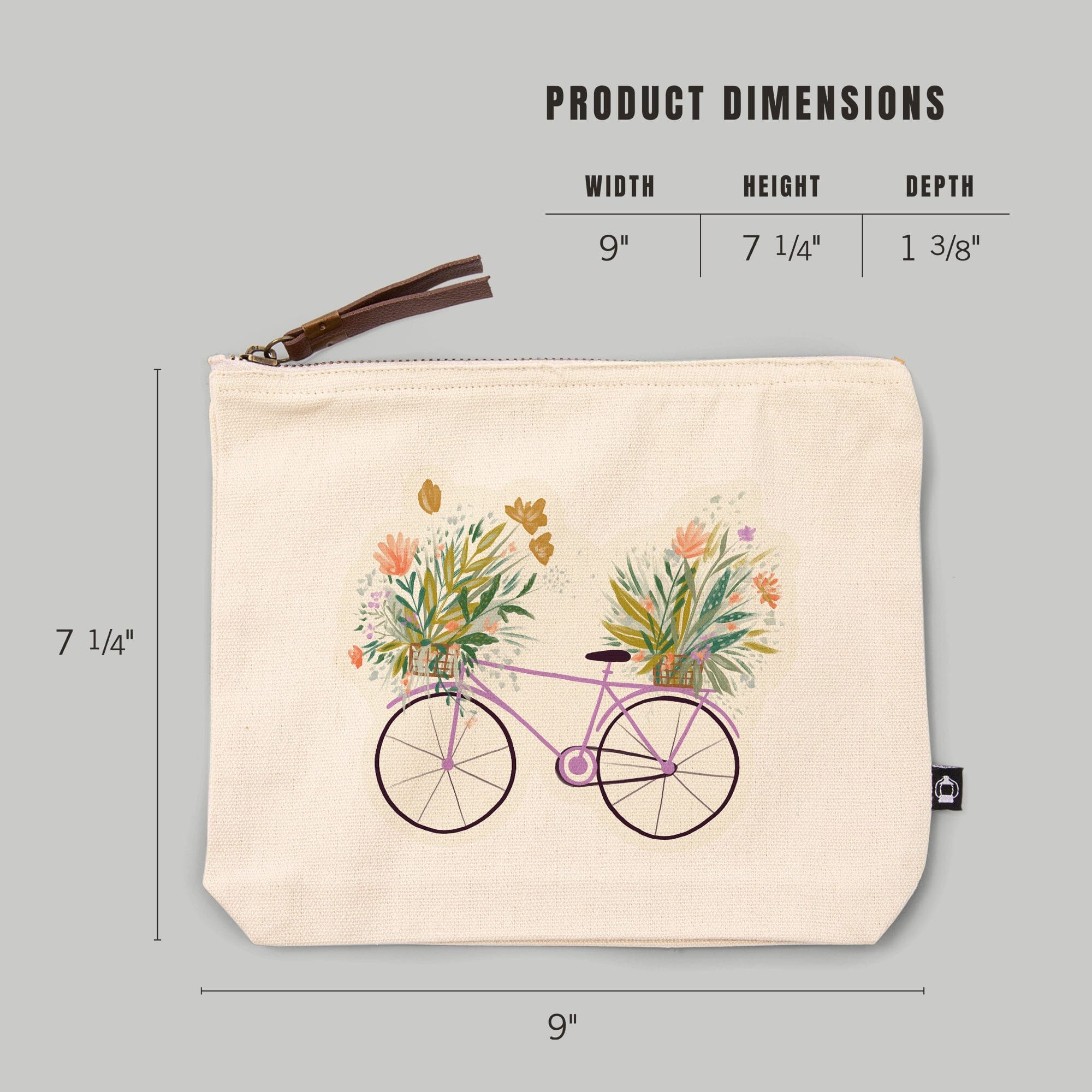 Nature's Beauty Series, Overflowing Flowers Bike,, Organic Cotton Zipper Pouch, Go Bag