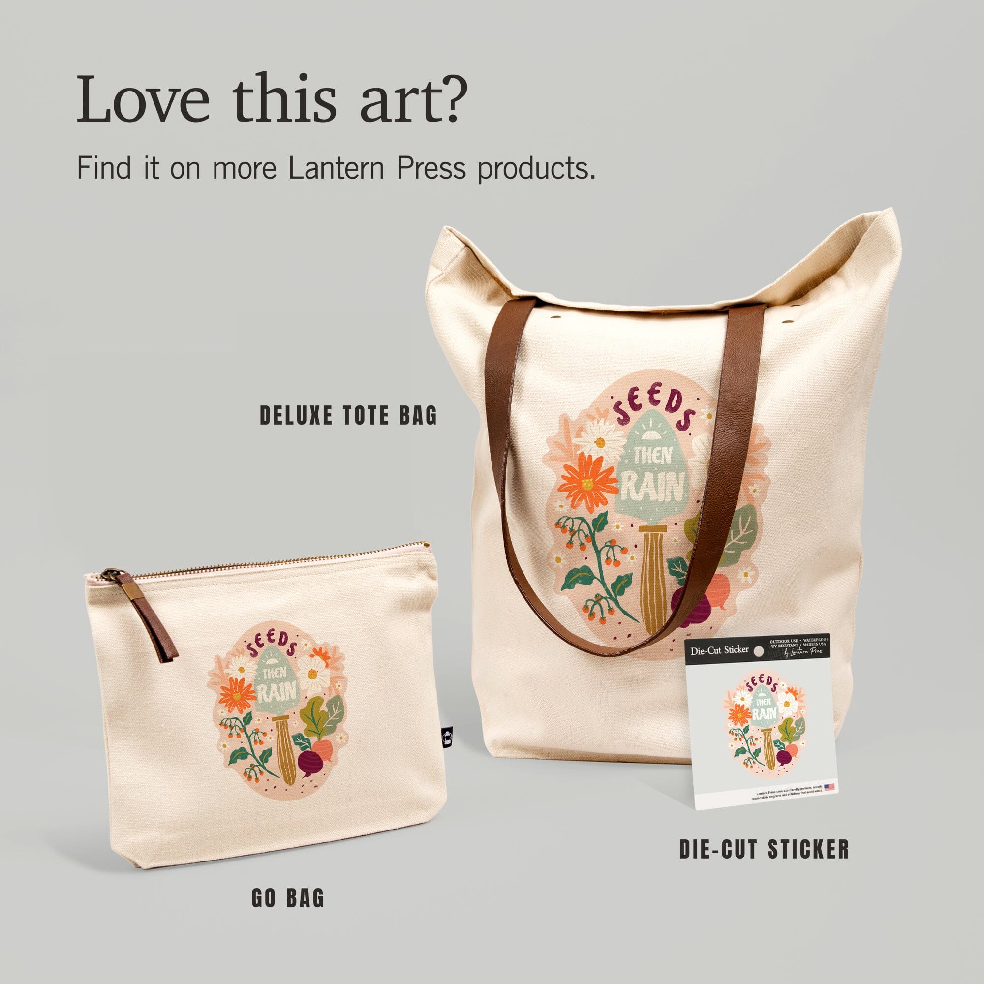 Nature's Beauty Series, Seeds Then Rain Shovel and Flowers,, Organic Cotton Zipper Pouch, Go Bag